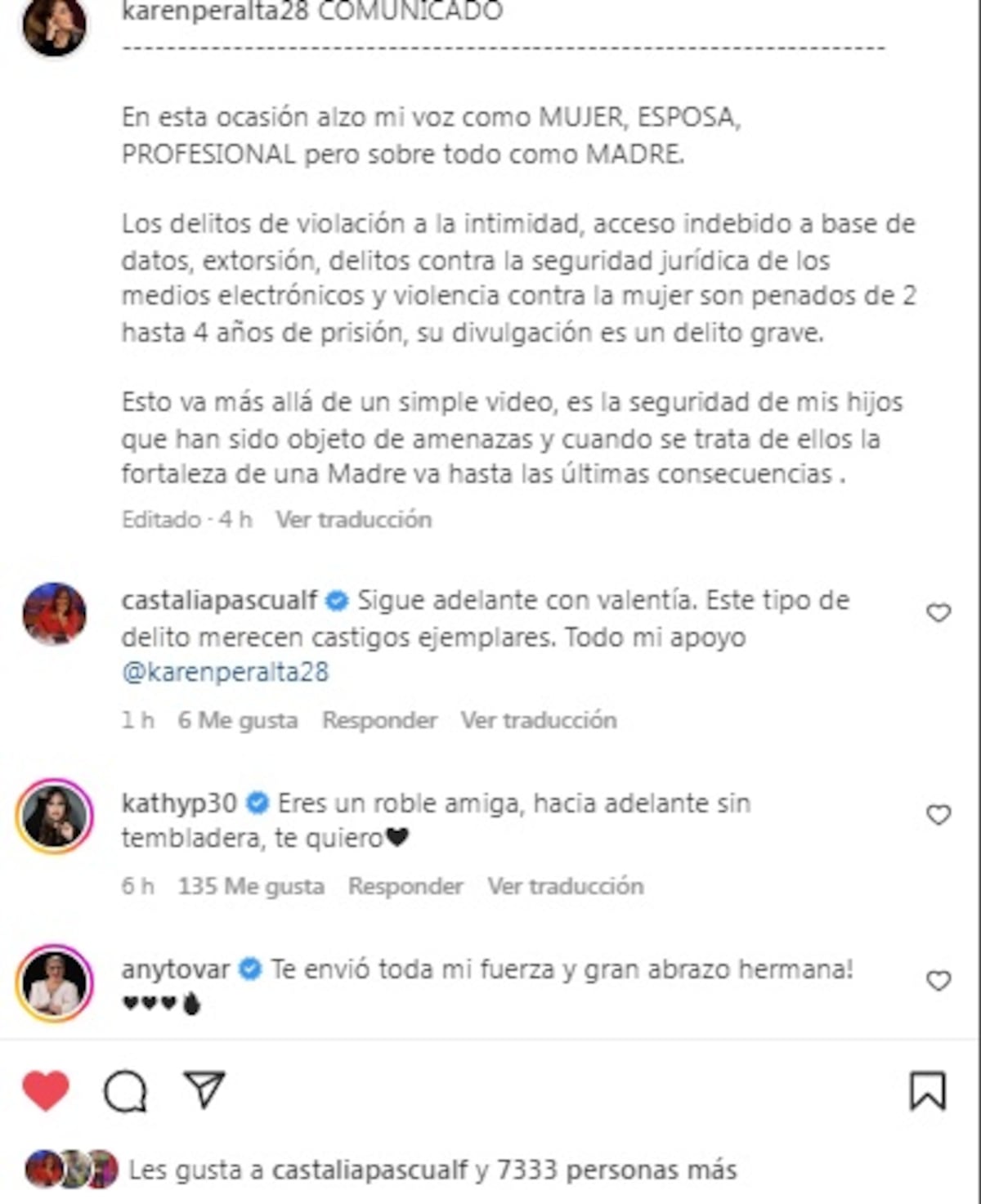 Karen Peralta reacciona tras los viideos filtrados y muchos le han mostrado su solidaridad.