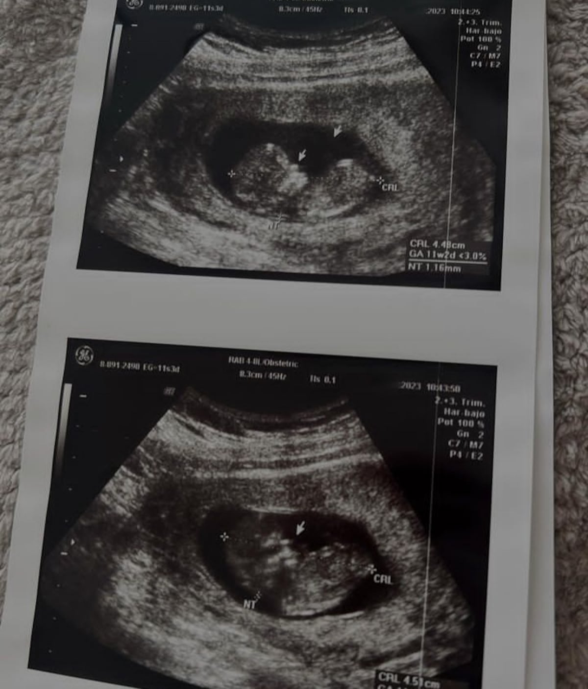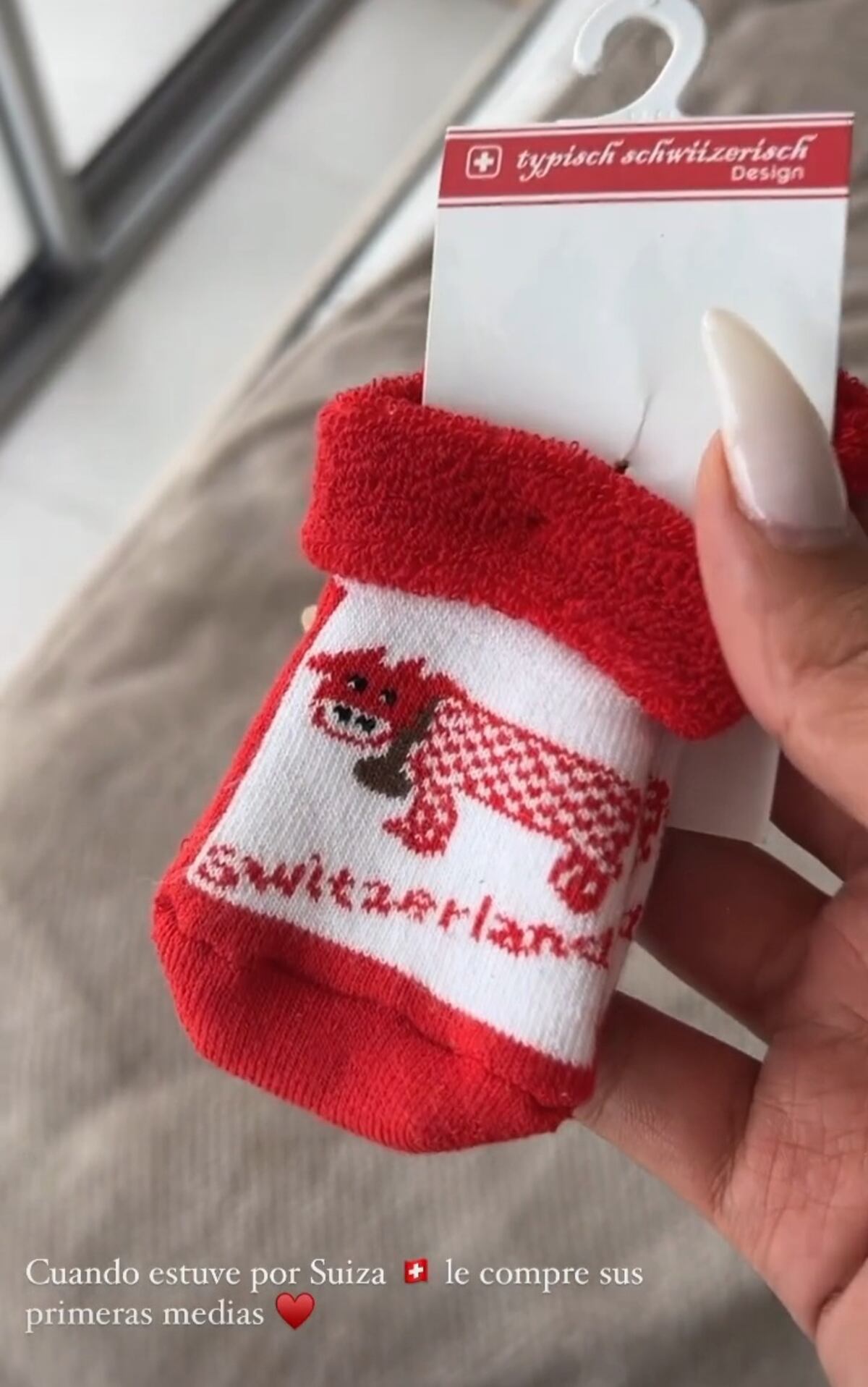 Además de mostrar los ultrasonidos del bebé, enseñó un lindo par de medias que ya le compró.