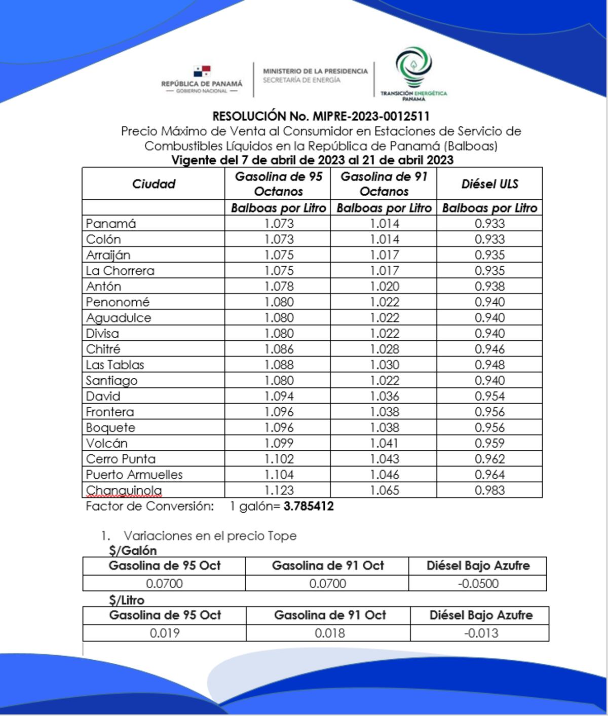 La extensión del precio fijo de B/.3.25 por galón de combustible para la gasolina de 95 octanos está por terminar, su vigencia vence este viernes, 21 de abril, cuando a su vez se anunciarán los nuevos precios máximos de venta de combustible en Panamá.