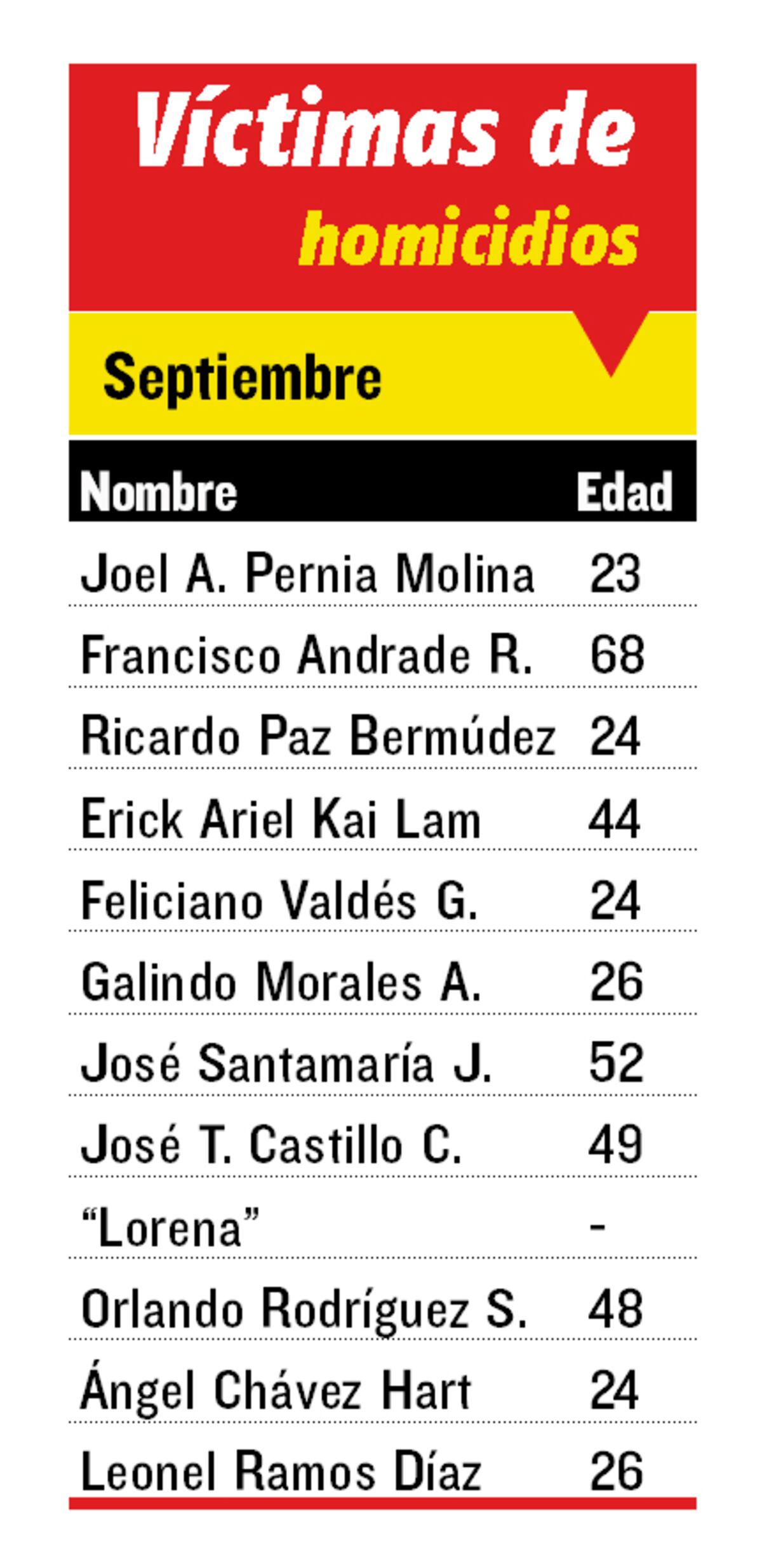 En Colón sumaron dos asesinatos; luego está Coclé, donde la noche del 2 de septiembre mataron a tiros al celador Francisco Esteban Andrade Rodríguez en una finca de la empresa Rama Fruit en El Chirú de Antón. Aún no hay aprehendidos.