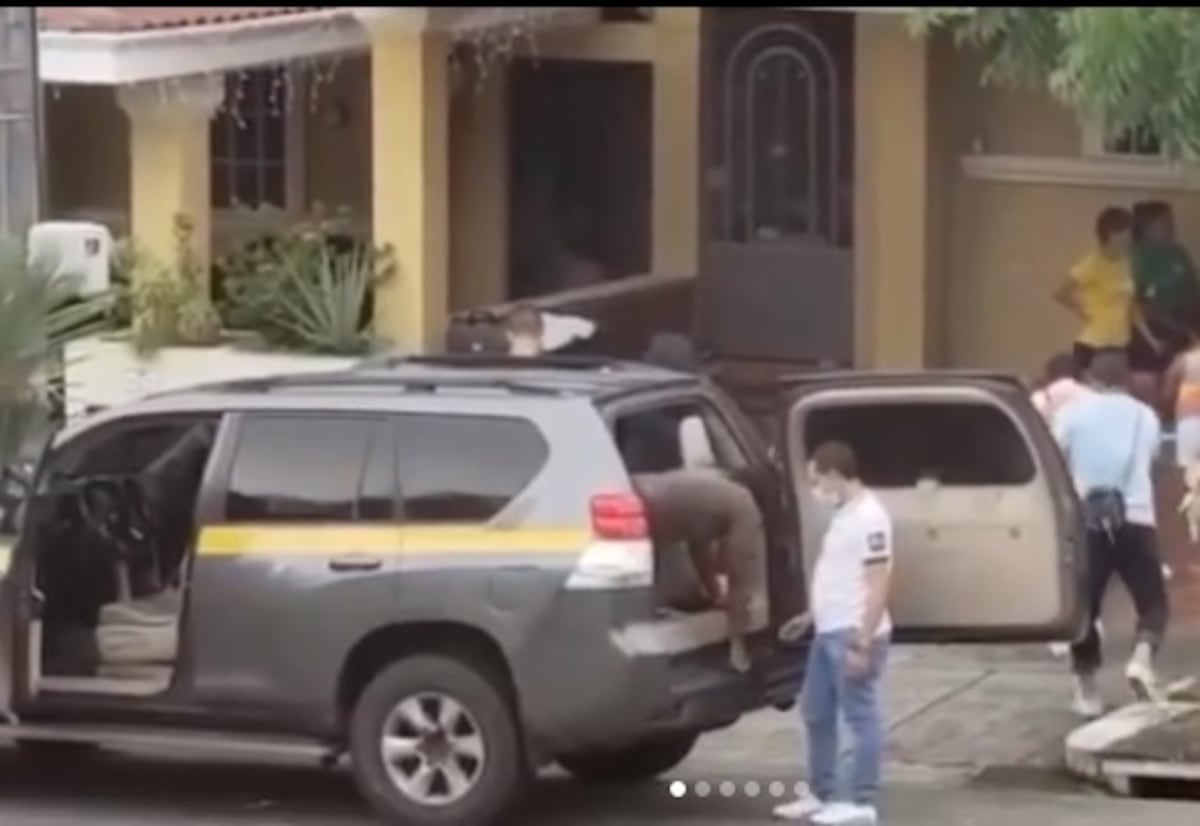 Un busito, aparentemente de la Policía, retiró a las personas que se encontraban dentro de la casa en cuestión, mientras que el auto oficial fue escoltado por la Policía.