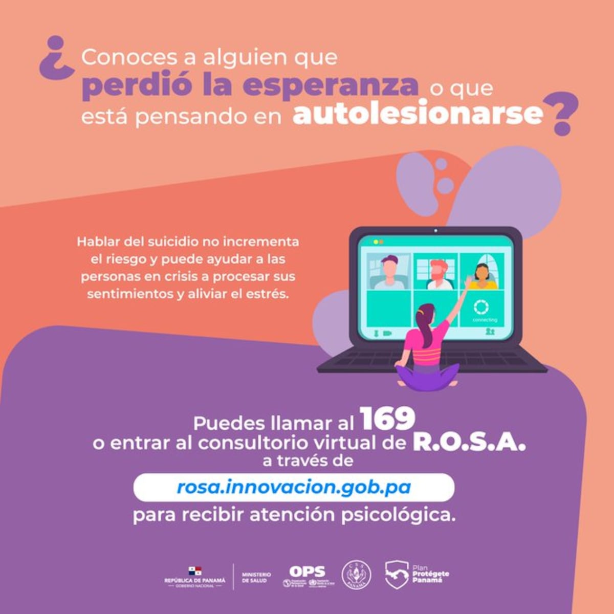 Si conocen a alguien con episodios de ansiedad, desesperación o depresión, o que necesite atención psicológica, puede informarle que no está solo, que todo tiene solución y que puede llamar al 169 o acceder al consultorio virtual R.O.S.A. para ser atendido por un profesional.