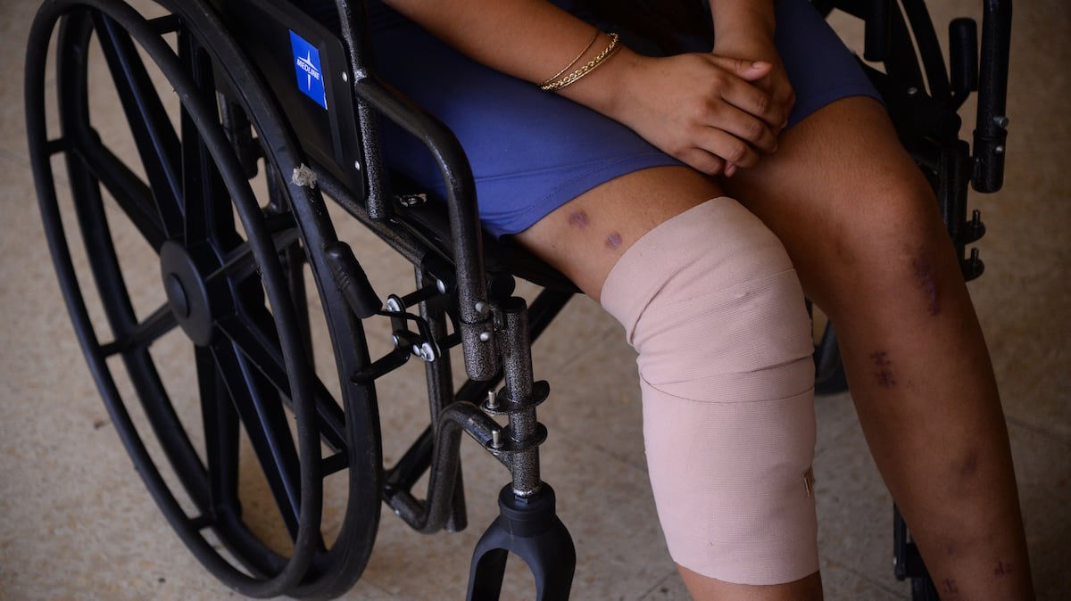 Fueron cuatro las intervenciones quirúrgicas a las que fui sometida, una en la pierna izquierda, dos en la pierna derecha y una en el rostro, donde se me hizo una reconstrucción facial. Aún sigo en tratamiento, limpiándome la herida en la pierna para que sane completamente, especialmente por la parte de adentro, pues aún está abierta, relató.