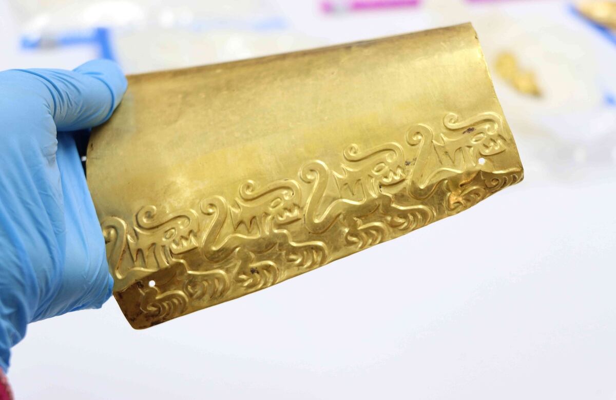 El pasado jueves 29 de febrero, el Ministerio de Cultura dio a conocer este descubrimiento, destacando que las piezas se encontraron en una tumba de la época prehispánica (750-800 d.C). La Senacyt detalló que entre los objetos encontrados se incluyen cascabeles, cinturones de cuentas circulares, pendientes, muñequeras, pectorales, entre otros.