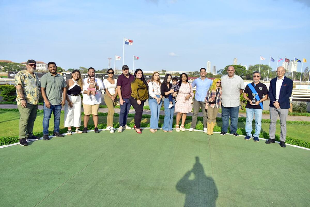 La yegua estadounidense ‘La Grande’ con su gente.Desde la partida, ‘Her Time Is Now’ tomó el control de la rápida carrera de seis forlones, pero fue cuestión de tiempo para que ‘La Grande’ que marcaba en la segunda posición la alcanzara en los primeros 600 metros, y al entrar a la tierra derecha solamente hizo gala de su marcada superioridad.