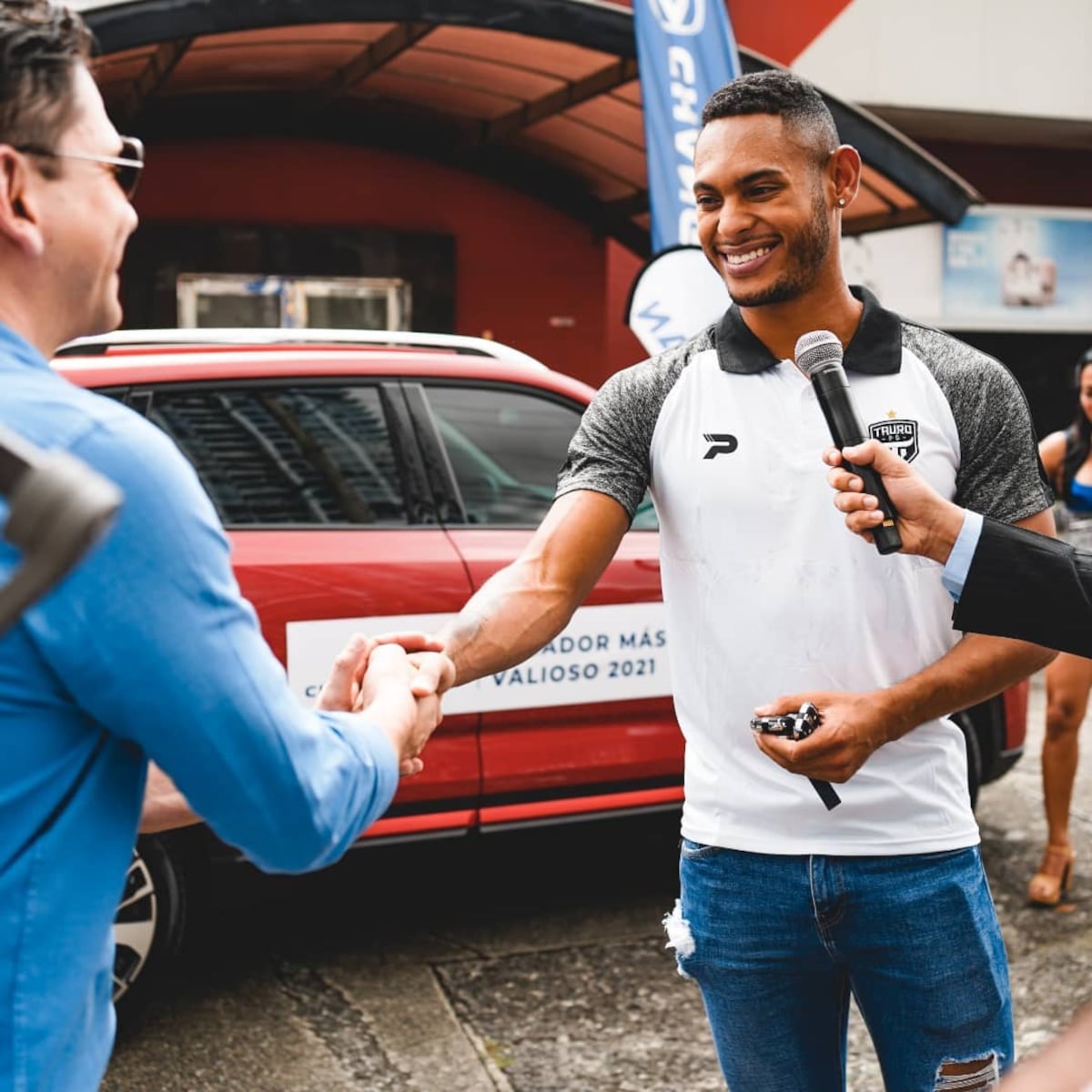 Ismael Díaz recibe de regalo un auto por ser el mejor jugador de la Liga Panameña de Fútbol 2021.Changan resaltó que el mensaje para la juventud es que el deporte sí paga y trabajar duro es bueno y tiene sus beneficios.