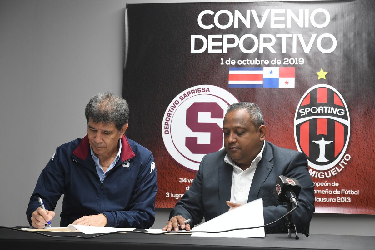 Raúl Pineda presidente del Sporting anunció en rueda de prensa junto a Evaristo Coronado Salas, Gerente Deportivo del Saprissa de Costa Rica, un convenio deportivo entre ambos clubes.