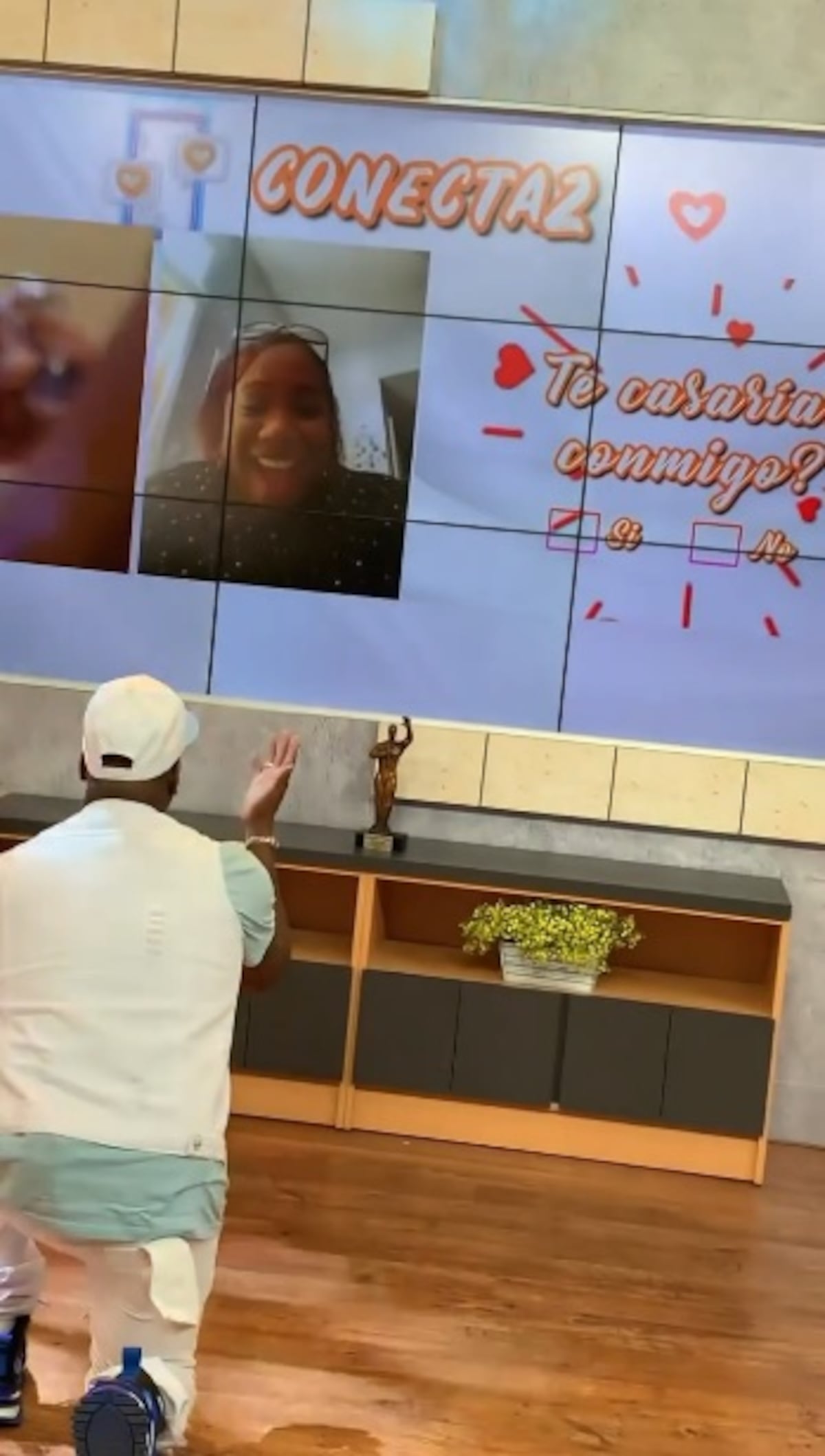 Aunque Nayeli está en Estados Unidos, Gringo aprovechó que la mamá y el pequeño hijo de su novia estaban en Panamá, para que lo acompañaran a una entrevista televisiva en Tu Mañana, donde también estaba conectada su novia a través de zoom. Así, frente a su suegra, él le pidió la mano a Neyeli, arrodillado ante la pantalla le preguntó si quería casarse con él.