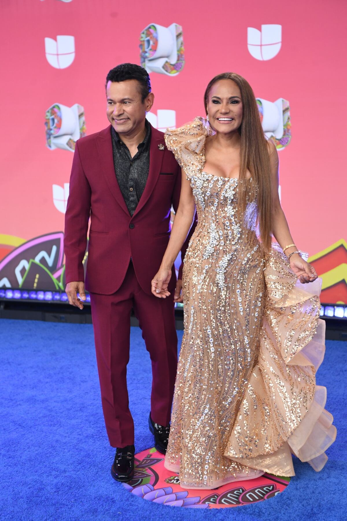 Los hermanos Samy y Sandra Sandoval también llamaron la atención, apostando por vestuario que mezclaba la tradición del típico con un aire moderno.