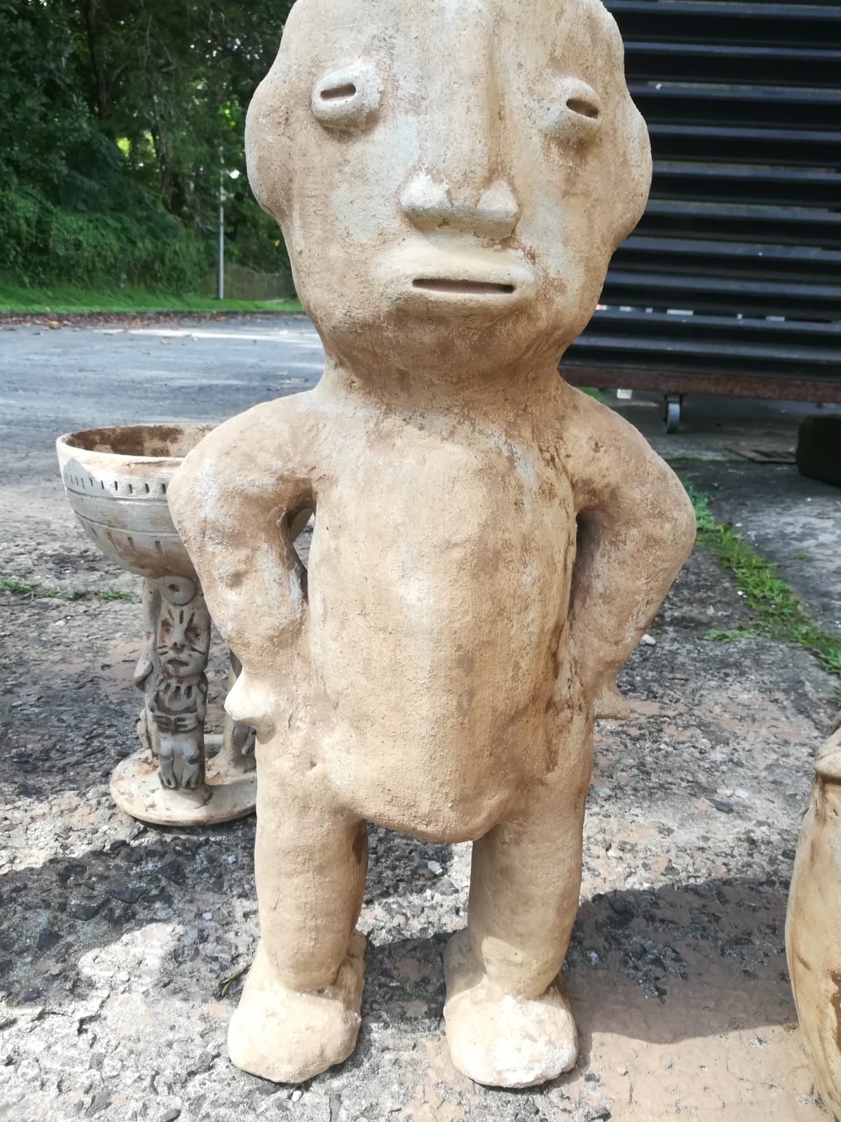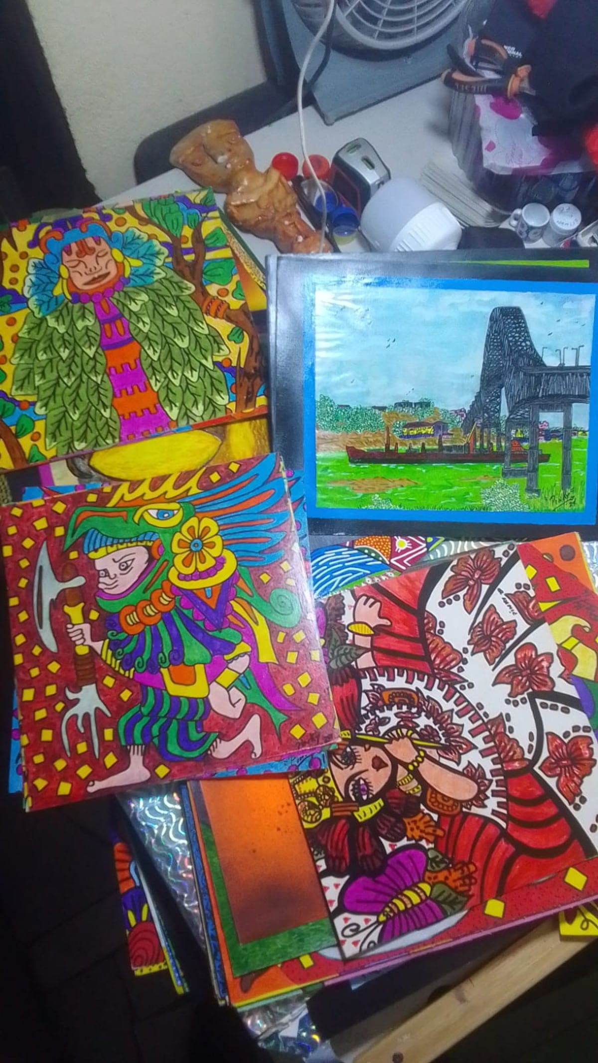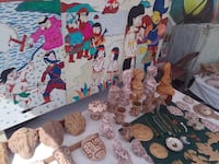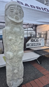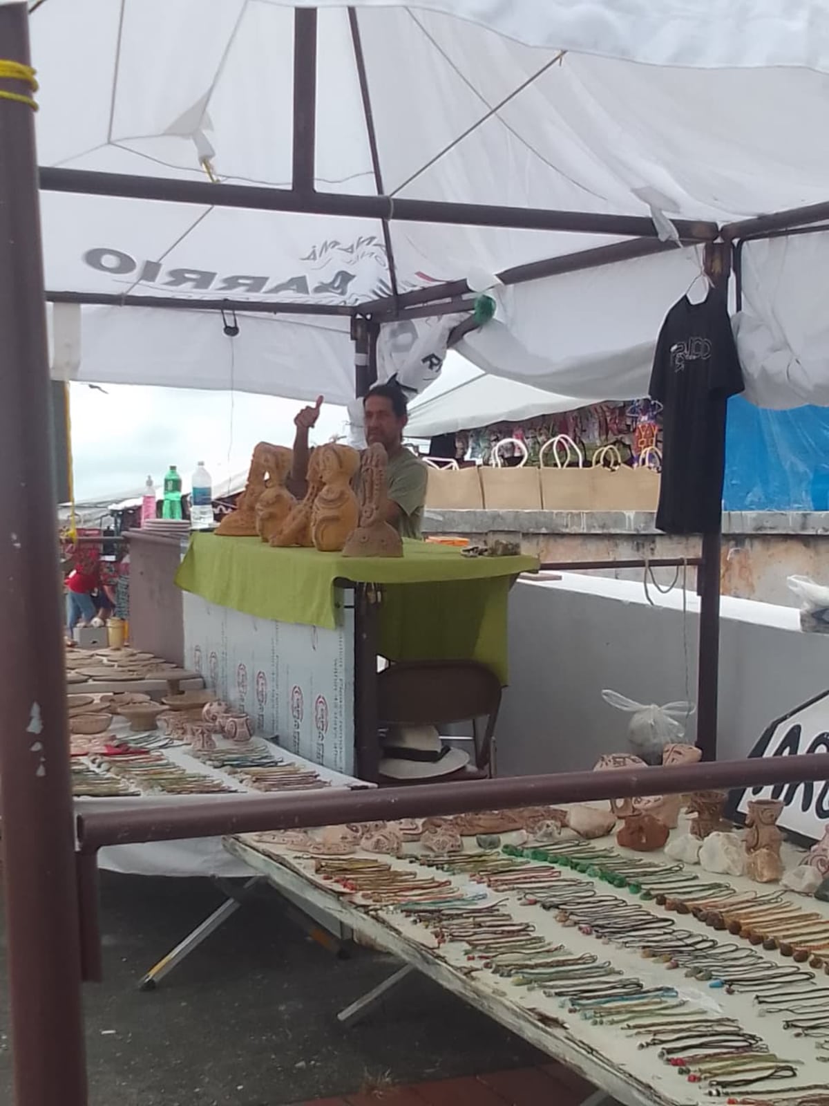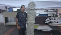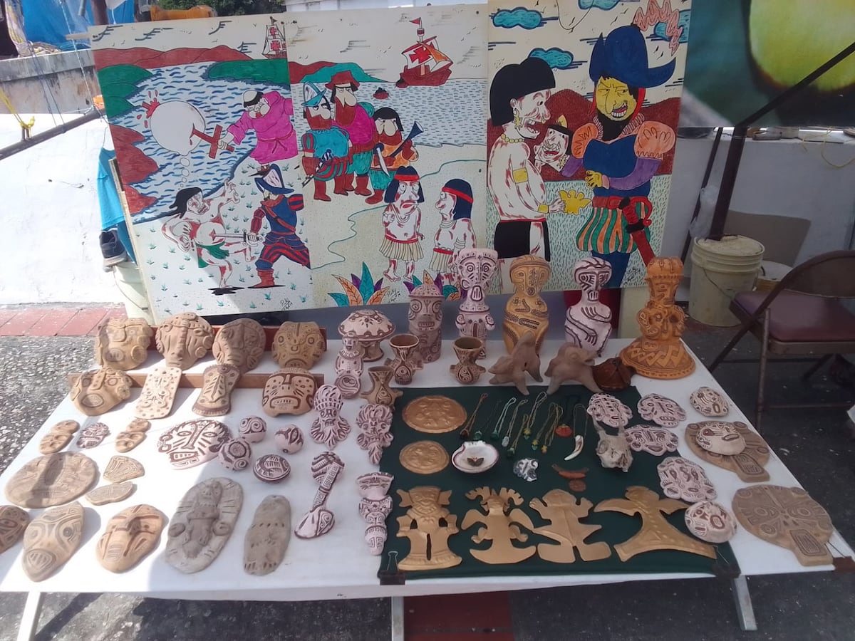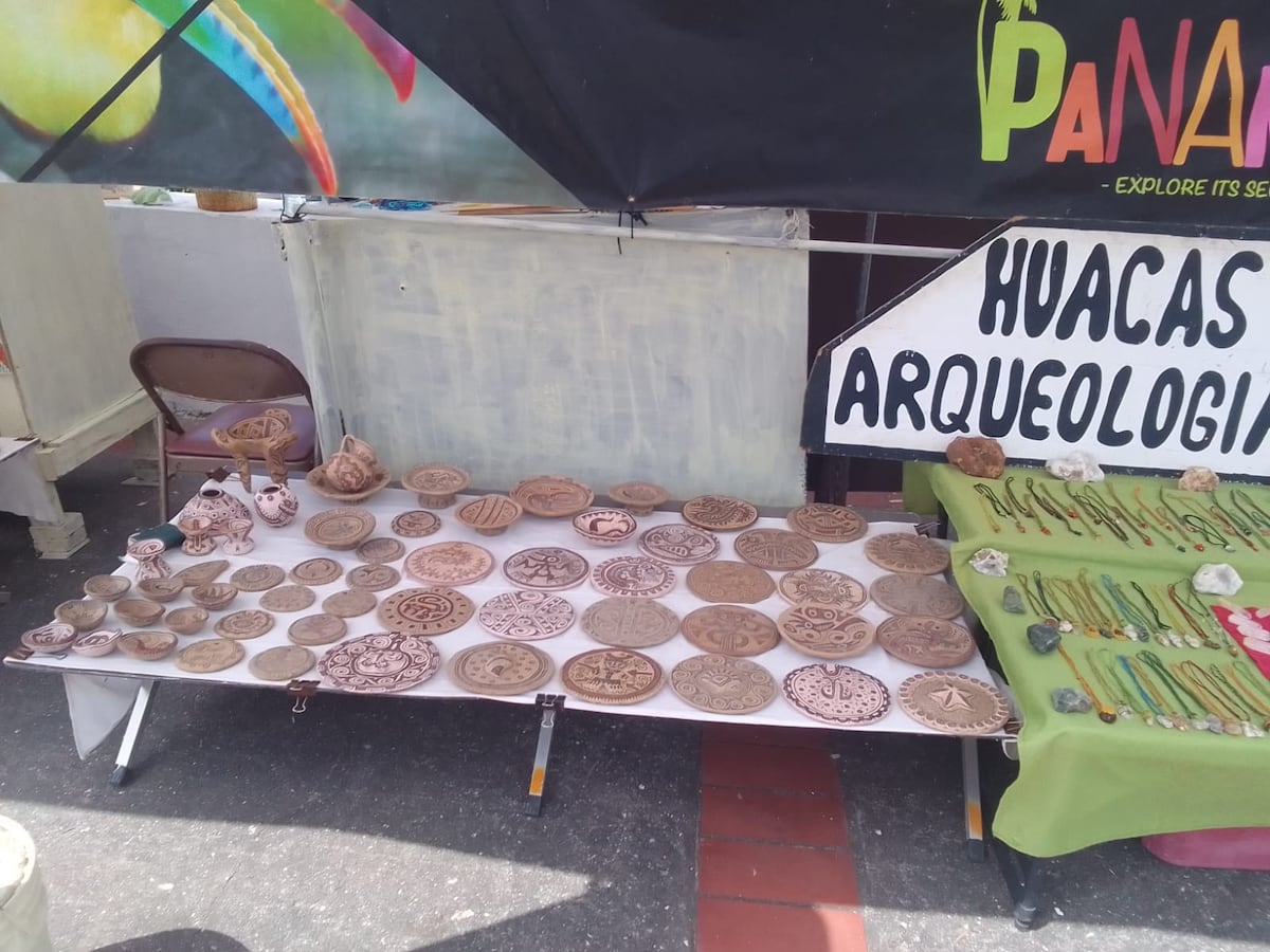 Allí, Félix Antonio Carmona, maestro artesanal en artes plásticas, exhibe y comercializa réplicas de huacas y piezas arqueológicas inspiradas en la herencia precolombina de Panamá.