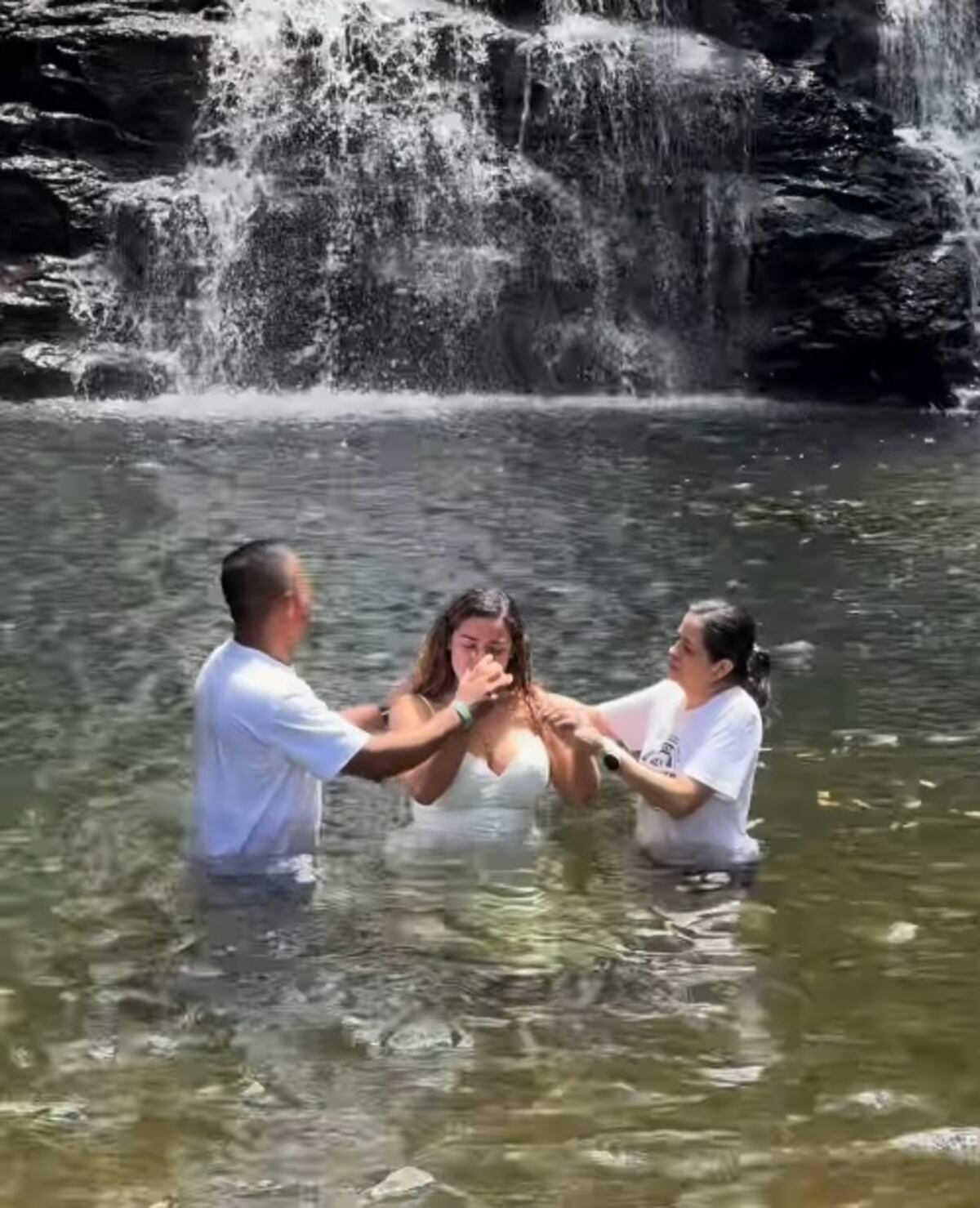 La creadora de contenido, conocida como Maykis en redes y madre de Adriana y Sabrina —fruto de su relación con el Vaquero— compartió el emotivo momento en su cuenta de Instagram. La ceremonia fue dirigida por los pastores Manuel y Yepzabel Acosta, quienes la sumergieron en las aguas mientras ella aceptaba públicamente a Cristo como su salvador.