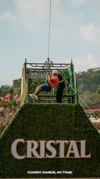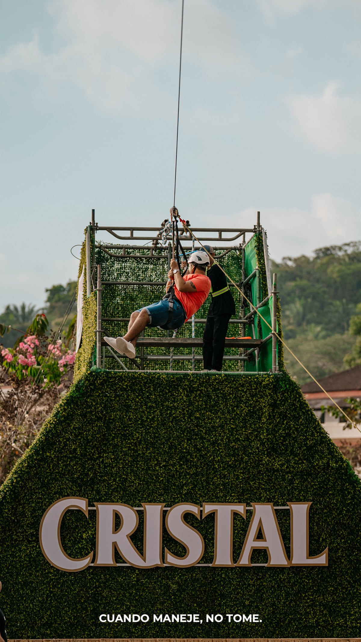 Durante el festival, Cerveza Cristal ofreció experiencias únicas a las personas, incluyendo un impresionante zipline de 110 metros de longitud, una pared de escalada de 8 metros, una barra de Cerveza Cristal con ingredientes extrafinos y una estación de reciclaje.