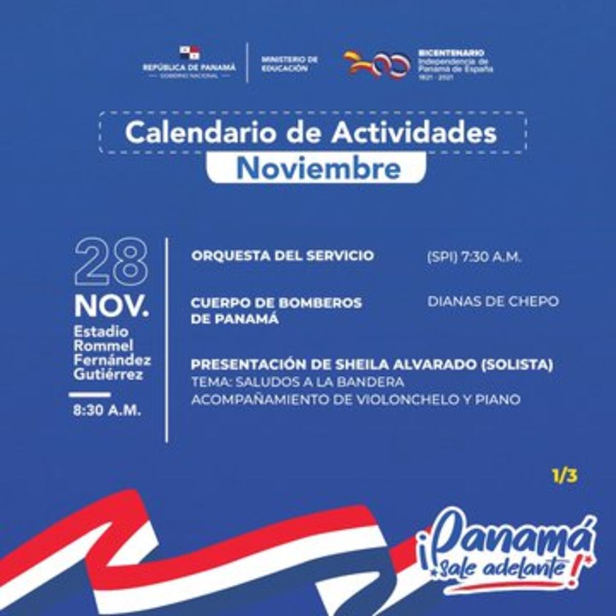 Este es el calendario de las exhibiciones de bandas de música y demás actividades, para conmemorar nuestros 200 años de independencia, este 28 de noviembre en el Estadio Rommel Fernández.