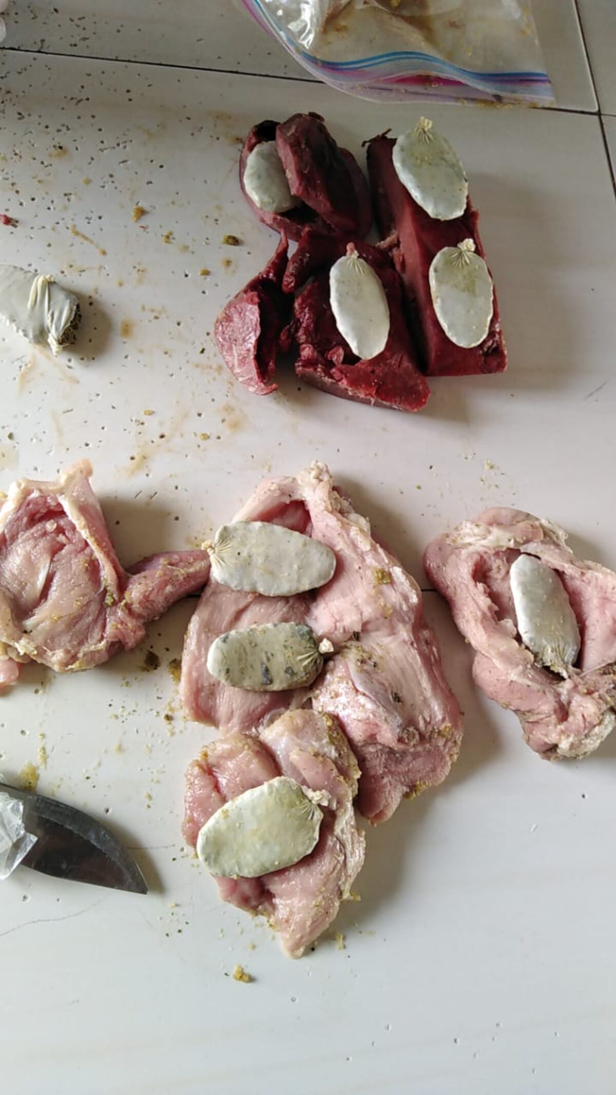 Varios envoltorios forrados con plástico transparente, que en su interior mantienen una sustancia que se presume sea droga, fueron decomisados entre carnes de pollo y tasajos a dos personas en momentos de la revisión de encomiendas, en el puesto de control 1 del Complejo Penitenciario La Joya en Panamá este.