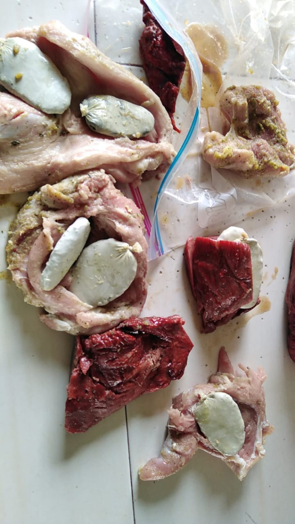 Varios envoltorios forrados con plástico transparente, que en su interior mantienen una sustancia que se presume sea droga, fueron decomisados entre carnes de pollo y tasajos a dos personas en momentos de la revisión de encomiendas, en el puesto de control 1 del Complejo Penitenciario La Joya en Panamá este.