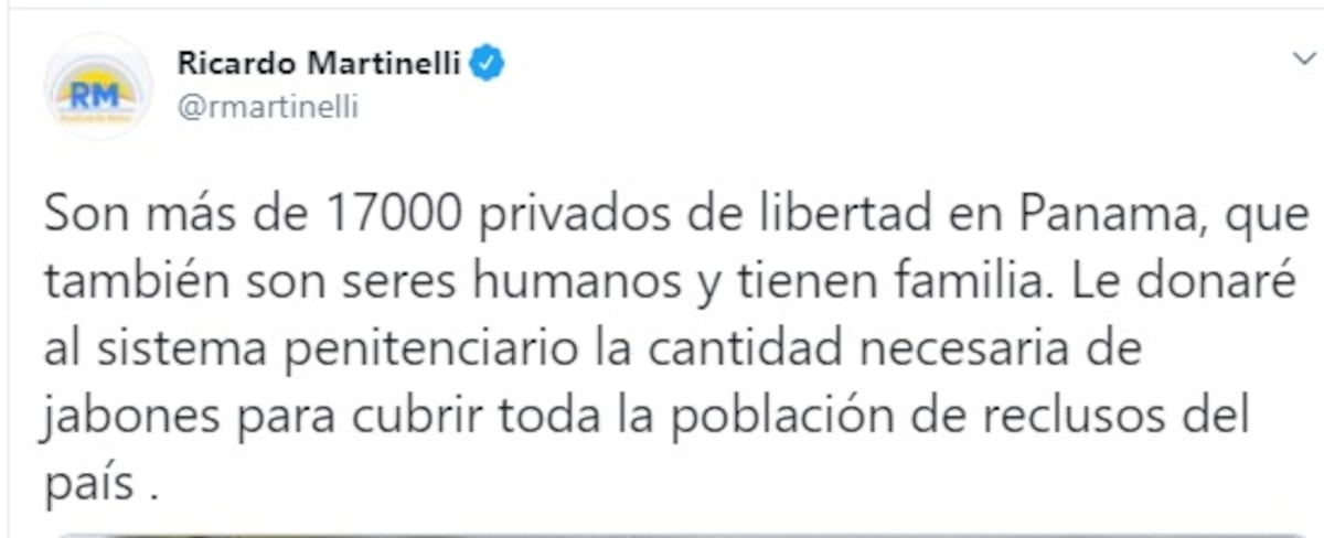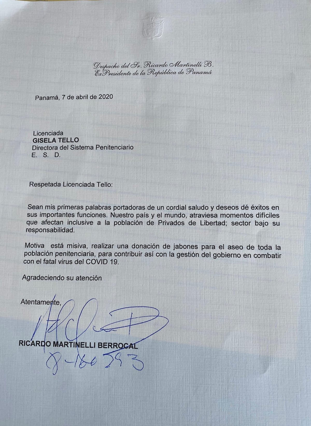 En tanto, el exmandatario y también empresario panameño, Ricardo Martinelli, se manifestó y anunció que donará al Sistema Penitenciario los suficientes jabones para cubrir toda la población penitenciaria que mantienen a más de 17 mil privados de libertad.