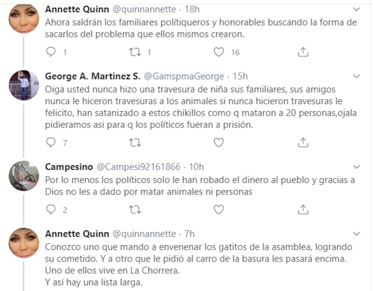 Figuras como la exprimera dama Marta de Martinelli, el exalcalde Juan Carlos Navarro y la expresentadora de TV Annette Quinn, reaccionaron de inmediato y solicitaron les caiga todo el peso de la ley a los responsables.