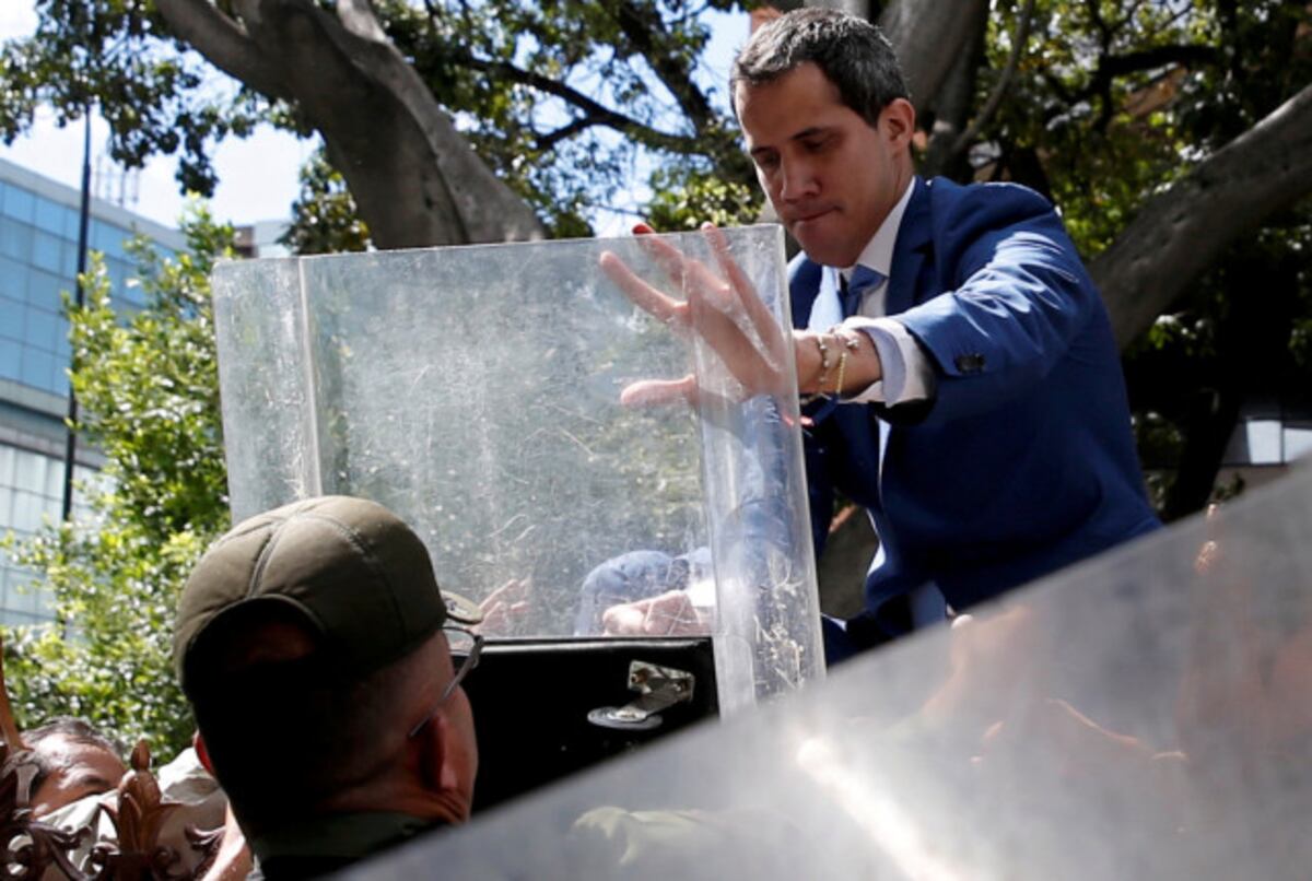 Guaidó, con el traje destruido luego de forcejear con las fuerzas chavistas que impidieron por horas su ingreso al Parlamento, pidió el respaldo de los venezolanos y de la comunidad internacional desde la calle.