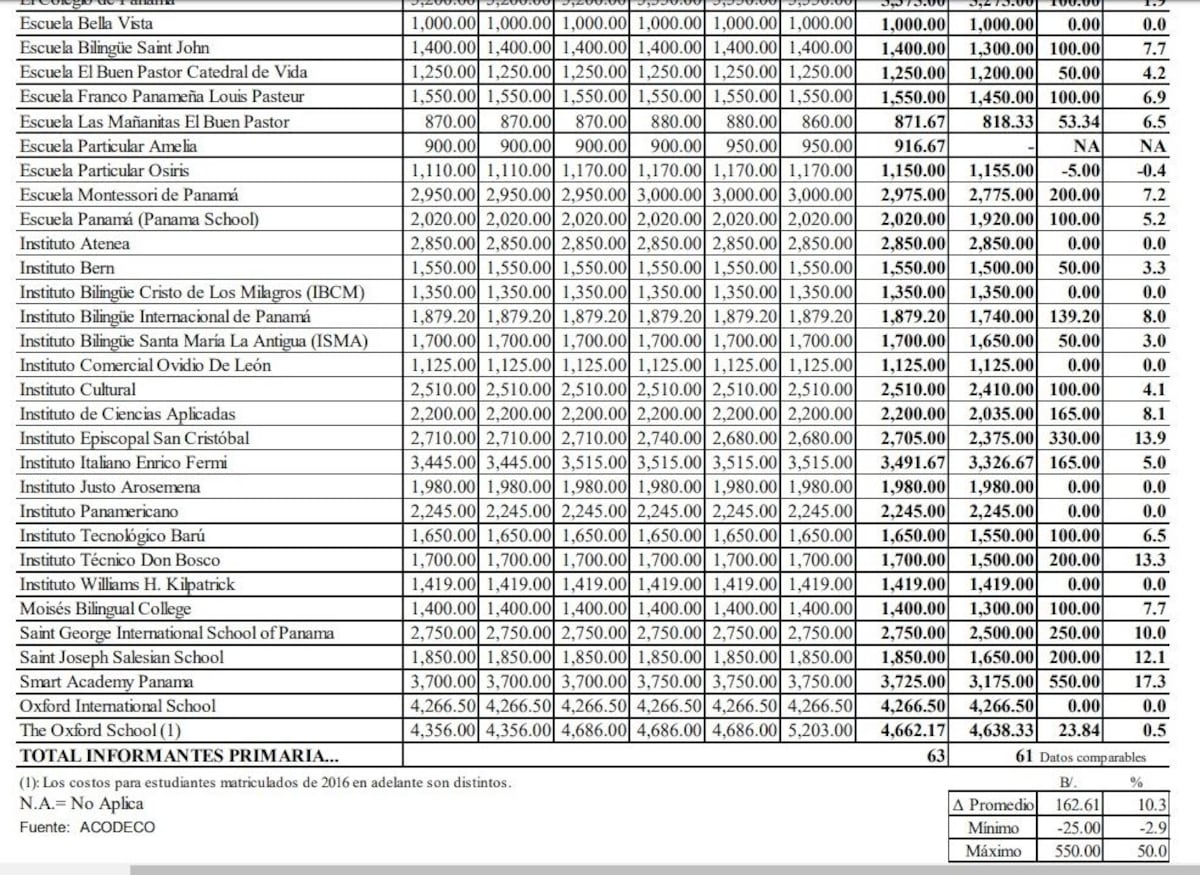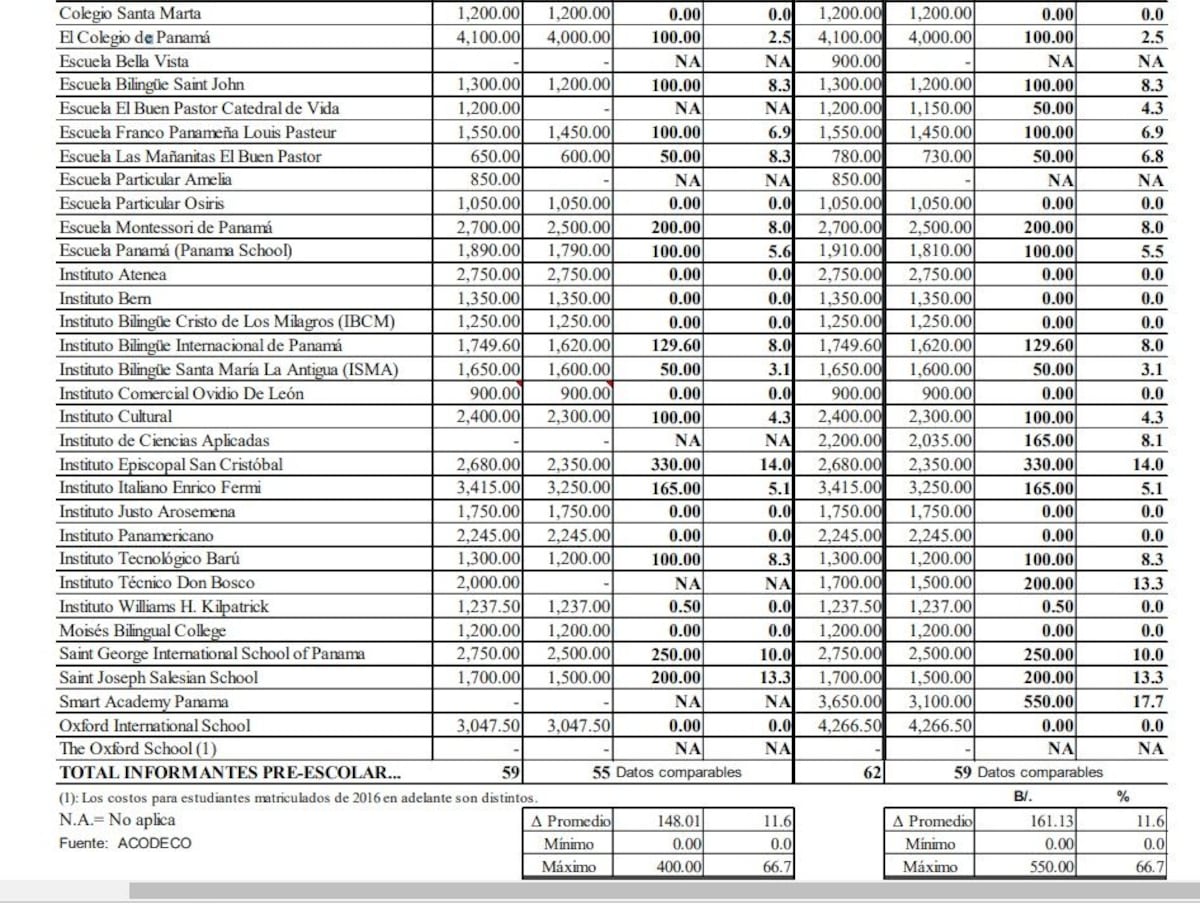 Lo cierto es que los padres de familia o acudientes deben prepararse, pues Acodeo confirmó que el 66% de los colegios particulares, considerados en un sondeo publicado en la página web de la Autoridad de Protección al Consumidor y Defensa de la Competencia (Acodeco), aumentó los costos de la anualidad para el año 2020, entre 50 y 550 balboas.