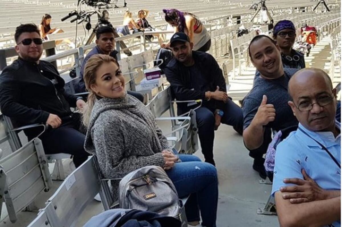 Margarita, sus músicos y Aristides Burgos conociendo el 'Monstruo de la Quinta Vergara'.