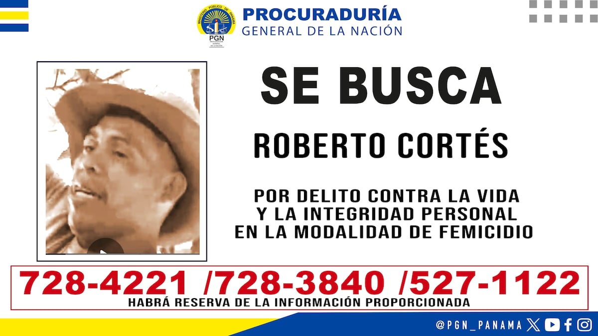 #SeBusca | La Sección de Homicidio y Femicidio de la Fiscalía de Chiriquí, pide colaboración a la ciudadanía, a fin de poder ubicar a Roberto Cortés, solicitado por las autoridades por su presunta vinculación al femicidio de Lidia Rodríguez Bejerano.https://t.co/YNZ8b1i8TE pic.twitter.com/aPhdOEQX9p