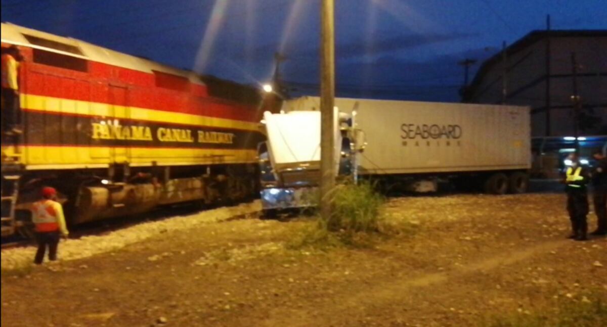 Una colisión entre el tren de Panamá Canal Railway Company y un vehículo articulado se registró en la vía de Cuatro Altos , la mañana este lunes en Colón.