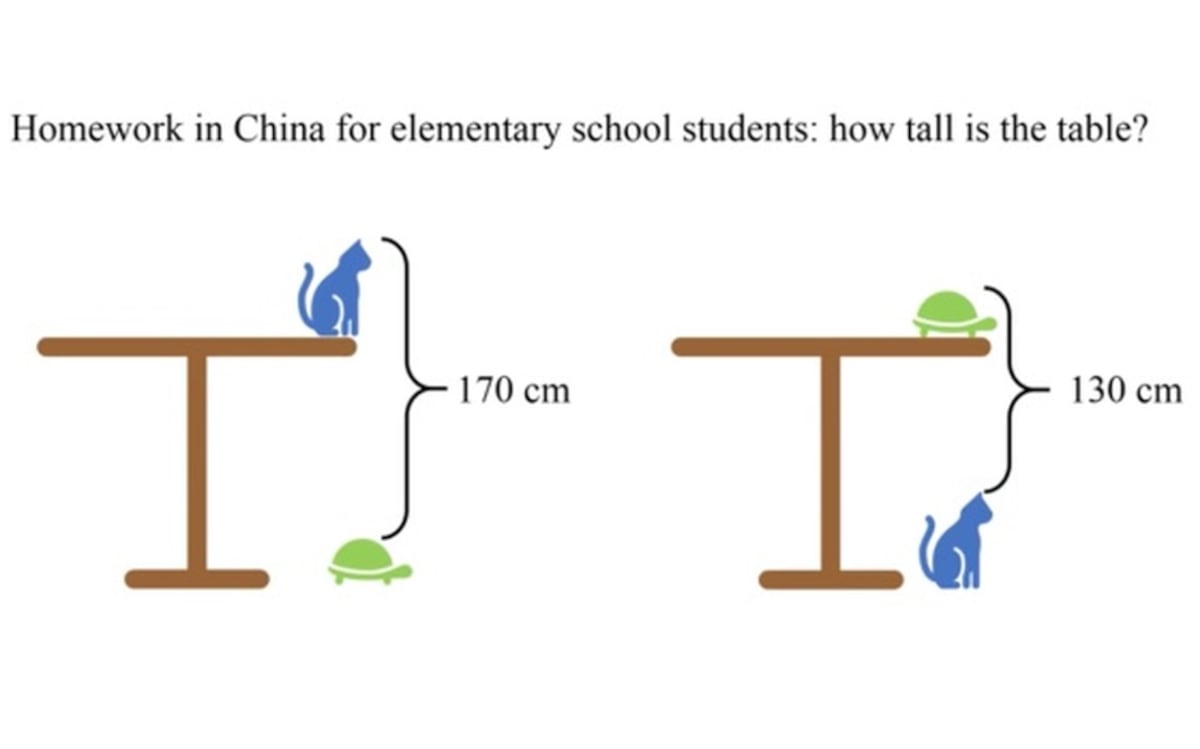 'Este es un problema que se pone a los estudiantes de educación primaria en China', avisa el vídeo. '¿Cuánto mide la mesa de alto, según la siguiente imagen?'.